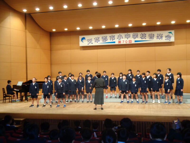 郡市音楽会 投稿日時 : 2023/11/22 学校サイト管理者 11月16日(木)、天草市民センター大ホールで「郡市音楽会」が行われました。志岐小学校は6年生が学校代表として出場しました。 学習発表会でも披露した「風になりたい」「変わらないもの」の2曲を発表しました 講師の先生方から、統一感があり、声の美しさはナンバー1!という評価をいただきました この日のために、音楽の時間だけでなく、帰りの会などでも練習を続けてきた6年生。合唱を通して、学級の絆も深めることができました。大きな舞台で表現できたことも大きな自信につながると思います。これからの6年生の活躍が楽しみです! Tweet {{options.likeCount}} {{options.likeCount}} {{options.unlikeCount}} {{options.unlikeCount}} 0 コメント