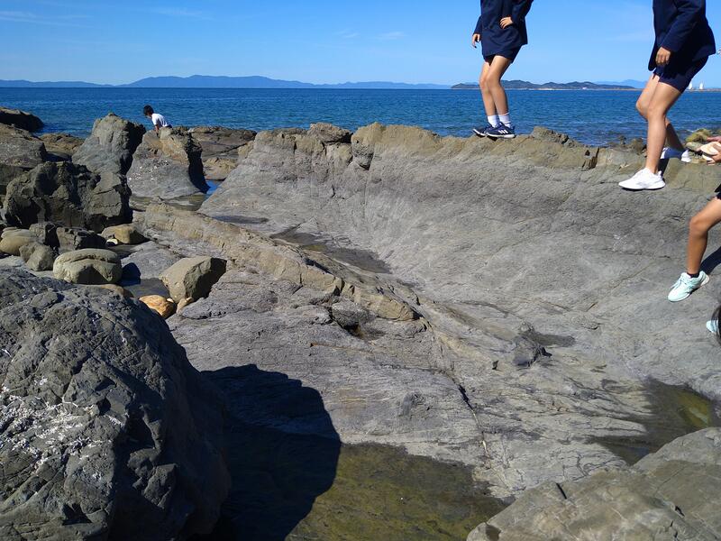 26日(水)は、都呂々の小松海岸と坂瀬川のおっぱい岩を見学。