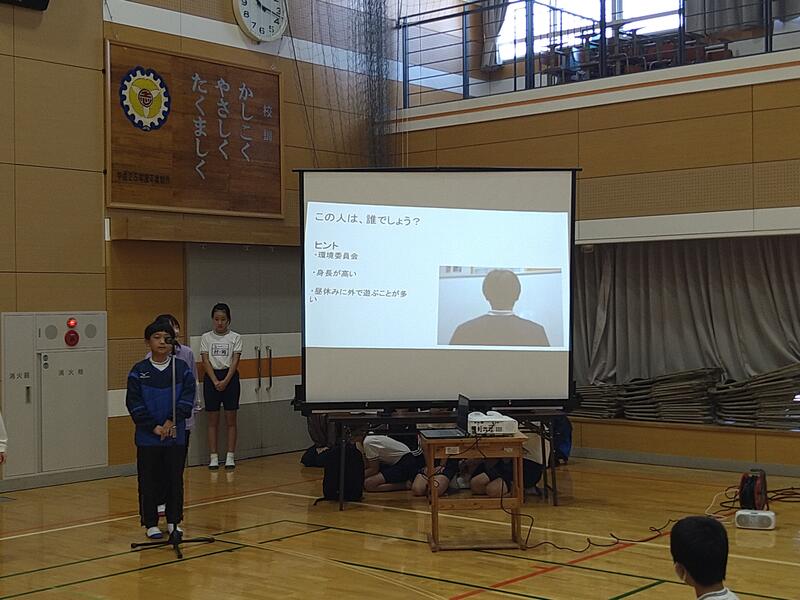 5年生は会の進行をしながら、6年生クイズを披露 6年生のことを詳しく知ることができました!