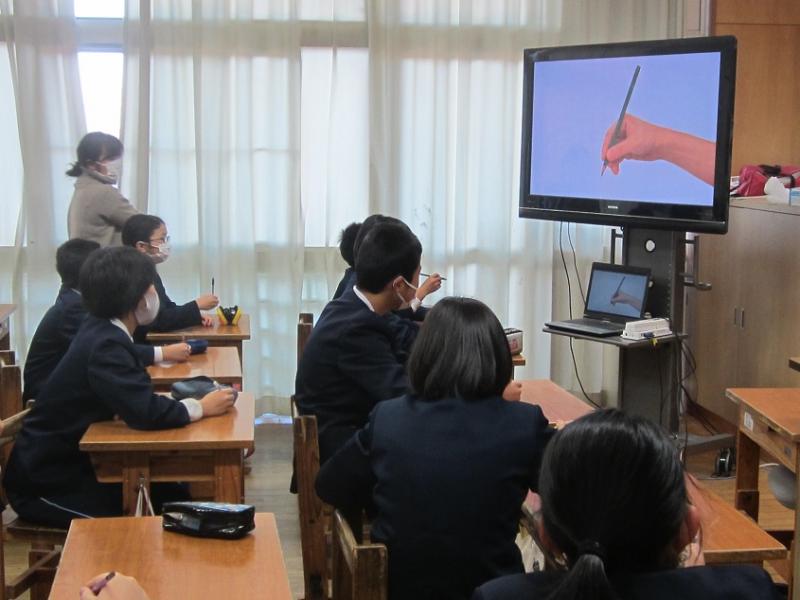 そこで、3学期から、書写の教科書についている「えんぴつの持ち方」の動画を視聴してから視写をするようにしました。