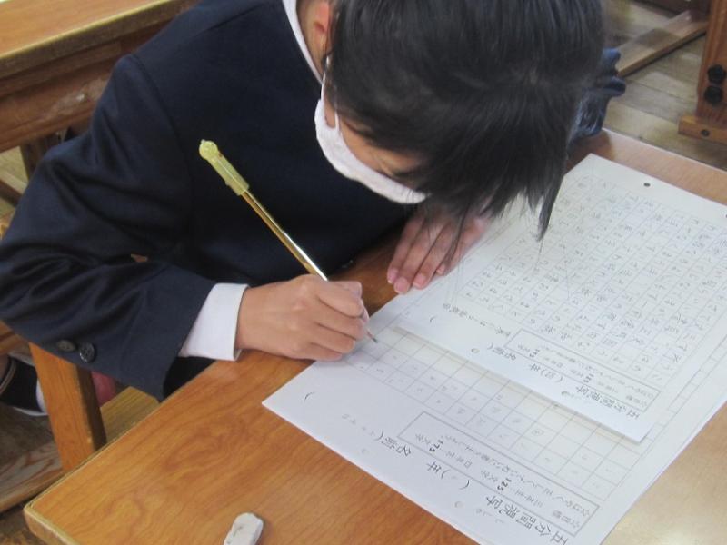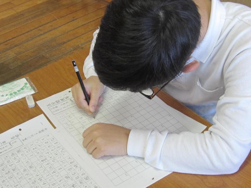 校内研修の取組の一つとして、毎週火曜日の朝自習の時間に「視写」を行っています。国語の教科書の題材を原稿用紙に書き込みます。5分間で何文字書けるか記録をとっていますが、ほとんどの子どもが文字数を増やして行っています。この「視写」にはいろいろな効果があります。書き写す活動なので、当然「書く力」が身につくのですが、それだけではありません。「読む力」も鍛えることができます。一文字見て書いて、をくり返しても速くは書けません。文章を文節で区切ったり、短い文章ならば丸々一文覚えて書き写したりするようになります。文章を文節で区切ることによって、読む力を高めることができます。また、優れた文章表現に触れることで、情景を想像したり、自分の文章表現に生かしたりすることができます。