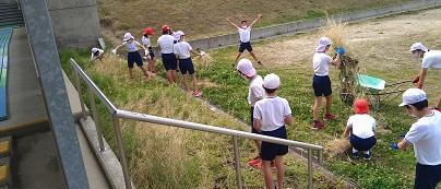 次は5年生。6年生が抜き残した雑草をきれいに抜いてくれました。