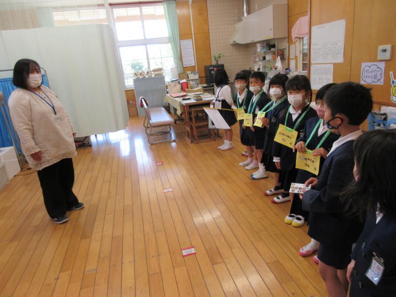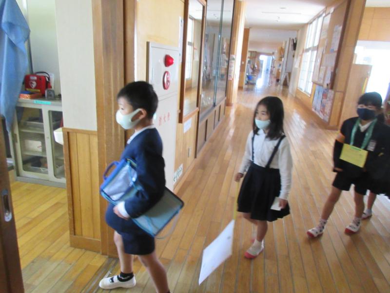 2年生が先導して1年生を案内。1年生は2年生のお兄さん、お姉さんのお話をしっかり聞いていました。