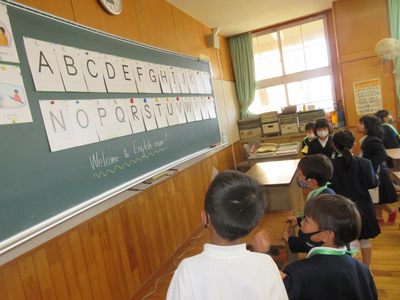 英語ルーム。3年生の外国語活動の学習から使い始めます。