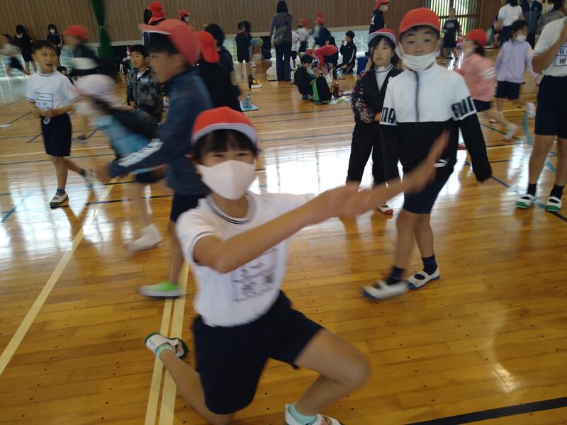 歓迎会の後はいよいよ出発。天気は大丈夫かな、と前日から検討に検討を重ねて判断し、目的地の麟泉公園に向かいました。しかし、途中でパラパラと雨が・・・。急遽、目的地を変更し、コミセンの体育館を利用しました。