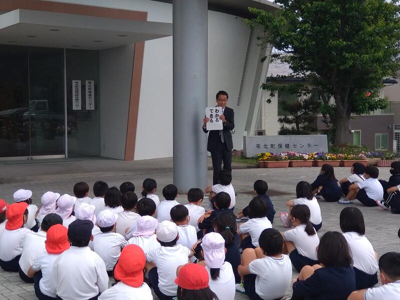 4月21日(金)、交通教室講話を行いました。子どもたちのために、天草地区交通安全協会の方が来てくださいました。