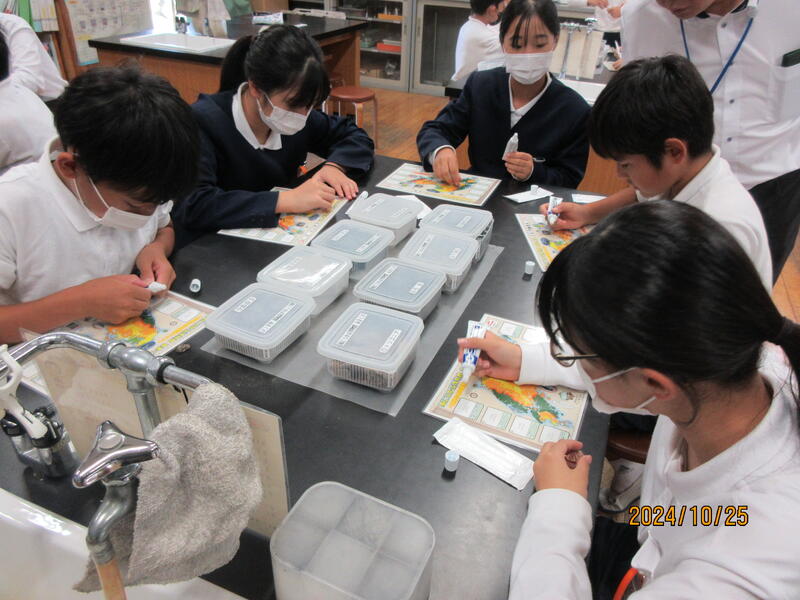 10月25日(金)と28日(月)、6年生が「天草自然学習」を行いました。両日とも、天草市の学芸員でいらっしゃる鵜飼さんをお招きして、天草の地層についての学習会を開きました。
