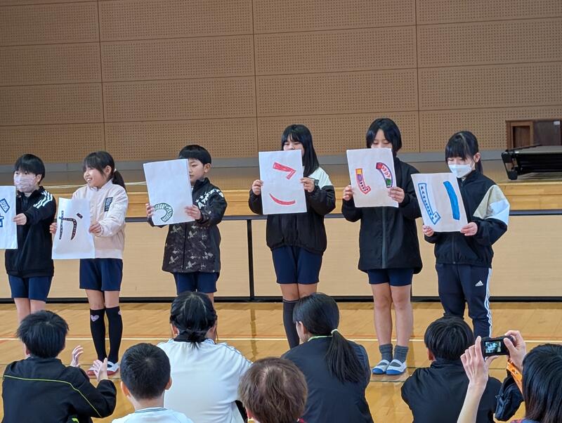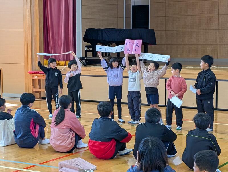 1年生の出し物 6年生に対するクイズの出題やメッセージを披露しました!