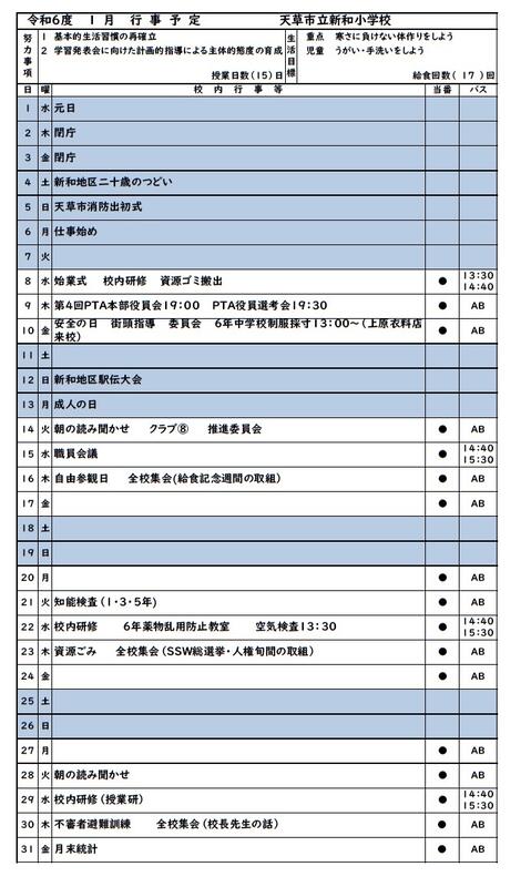 R7 1月行事予定を掲載しました。