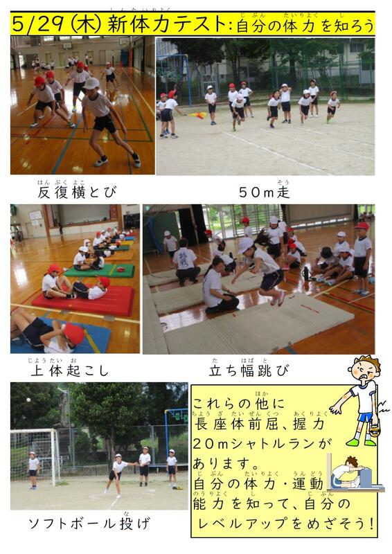 5/29(木)新体力テスト・・・自分の体力を知ろう 投稿日時 : 05/29 学校サイト管理者 0 {{options.likeCount}} {{options.likeCount}} {{options.unlikeCount}} {{options.unlikeCount}}