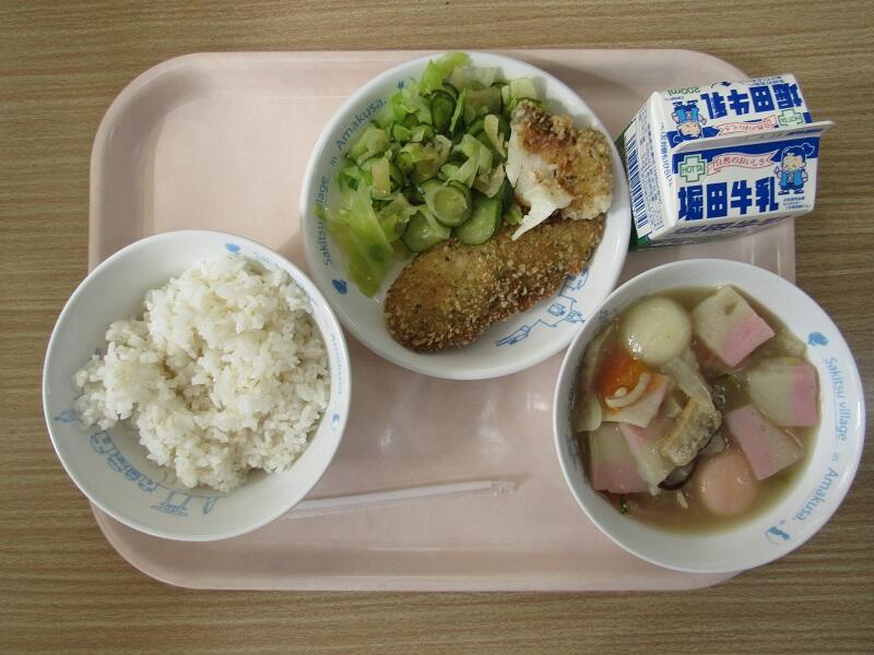 11月の「給食献立表」「給食だより」をアップしました。また、11月のふるさとくまさんデーは11月19日(水)に「荒尾・玉名の味」、天草宝島デーは11月11日(火)の「新米」、11月14日(金)の「みかん」、11月18日(火)の「太刀魚フライ」です。