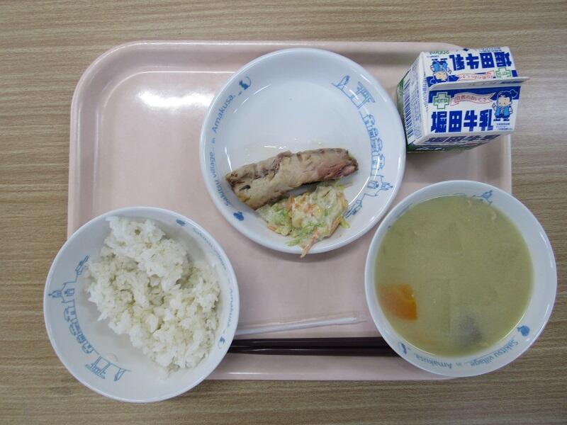 3月20日(月)麦ごはん、さつま汁、鰯(いわし)生姜煮、海藻サラダ