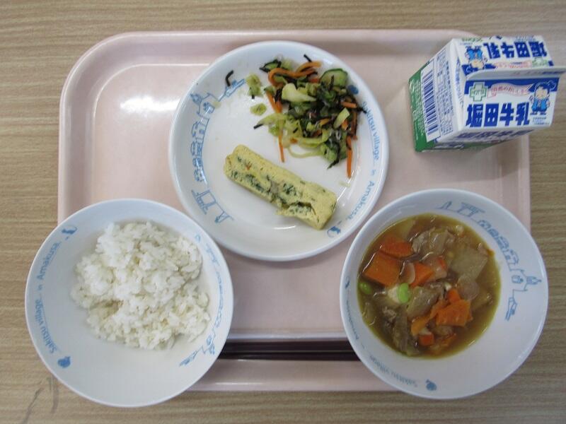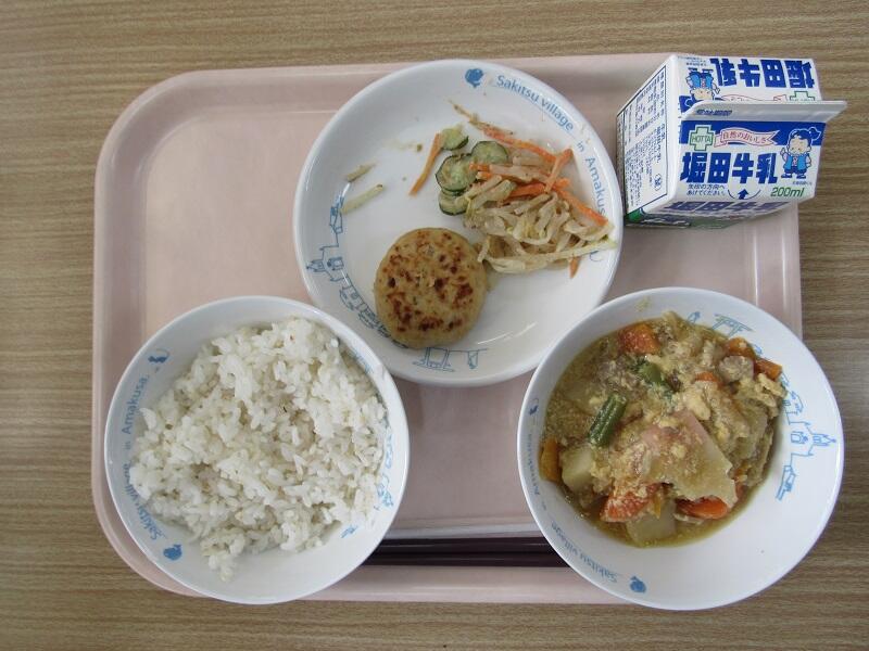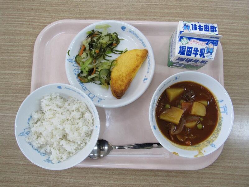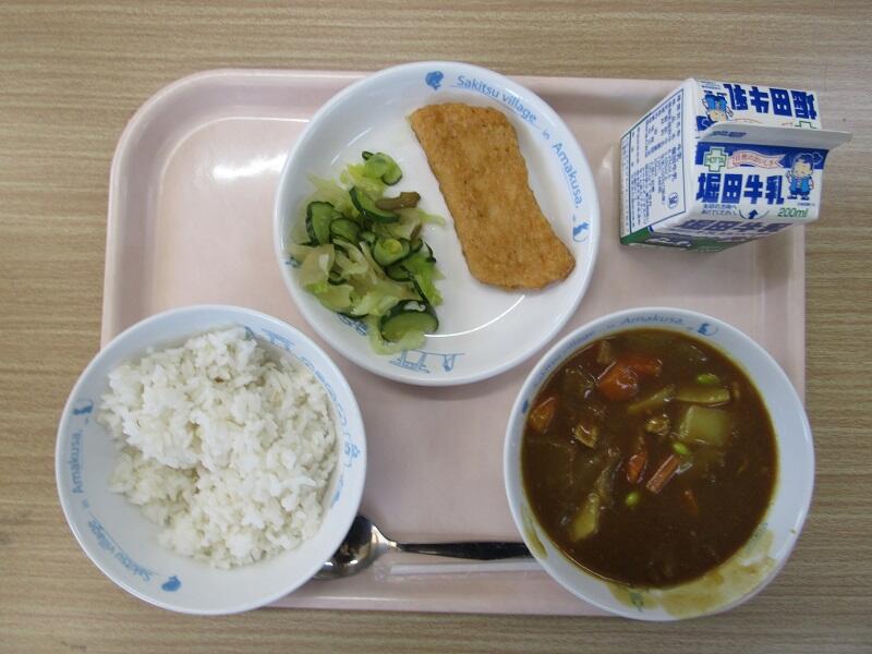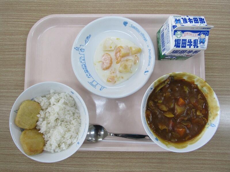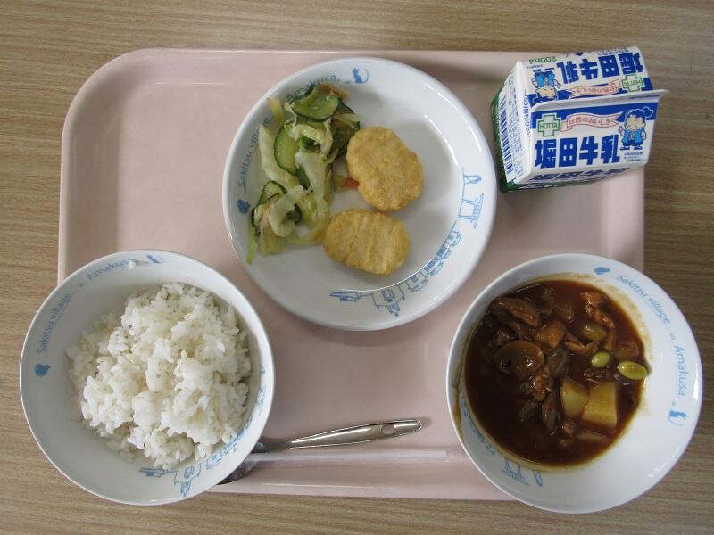麦ごはん、ポークカレー、チキンナゲット、フルーツヨーグルト