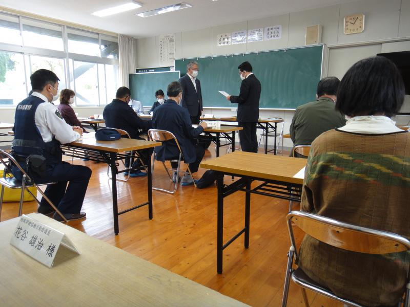 中学校の授業参観を行った後、各コミュニティごとの活動の進捗状況やこれからの予定の確認、地域学校協働活動推進員の花谷さんから活動紹介、そして意見交換を行いました。