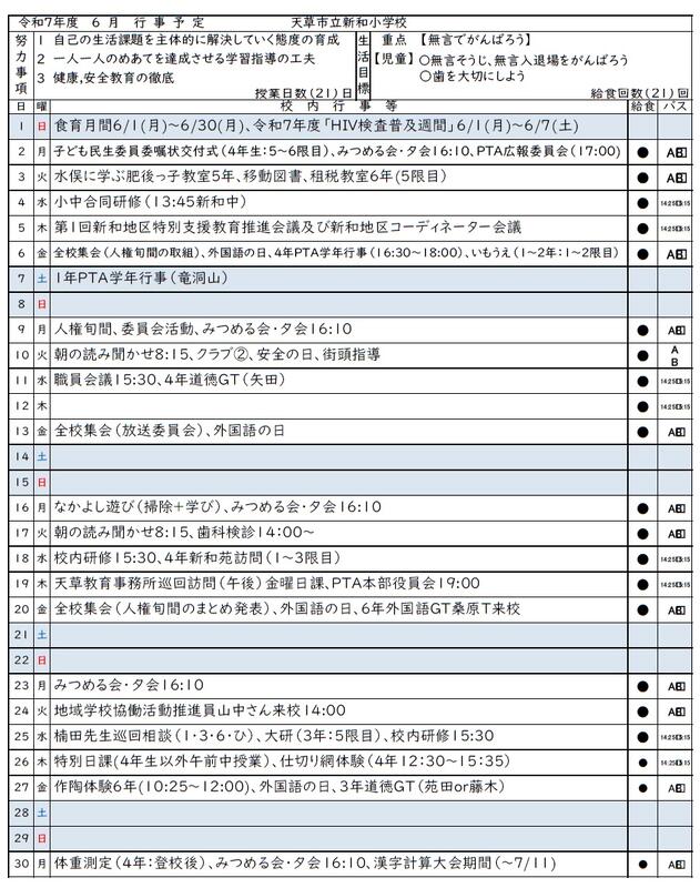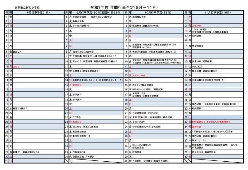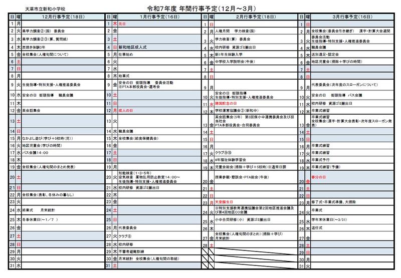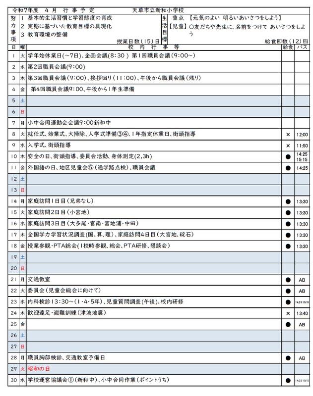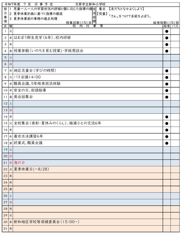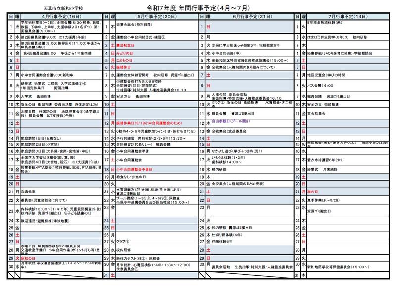 ※あくまでR7年4月当初の予定であり、その後の変更等がある可能性があります。