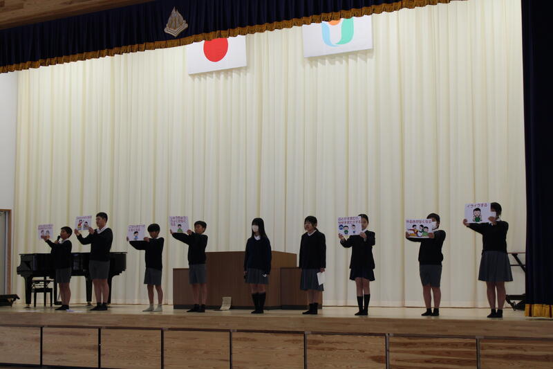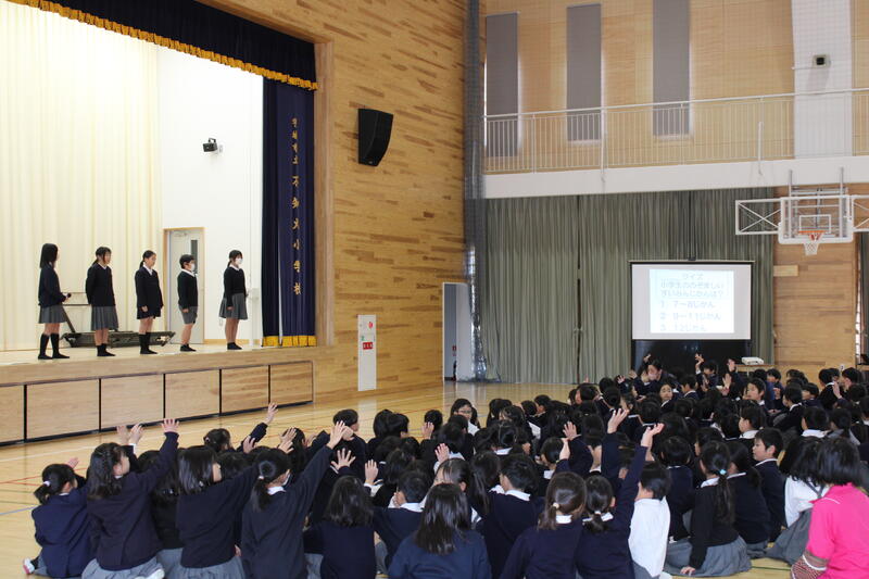 本日、児童集会が行われました。今回は給食委員会による発表でした。1月24日が給食記念日なので、全校児童に向けて給食クイズをしたり、食べ物の栄養のことを劇にして分かりやすく説明してくれました。これからも食べ物に感謝して給食を食べましょう!