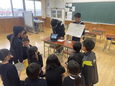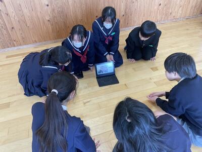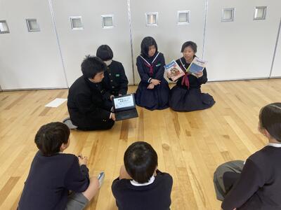 不知火小学校・不知火中学校では、義務教育9カ年間をより充実させるため、小中一貫教育に取り組んでいます。その一環として「小中一貫の日」を定期的に設け、小中学校の連携を図る取組を行っています。2月21日は、不知火中学校の先生方が6年生の授業を参観したり、不知火中学校1年生が、不知火小学校5年生と交流したりしました。子供たちの交流では、中学生が事前に作成した中学校の生活の様子を説明するスライドを使って、小学5年生の子供たちに中学校の生活の様子を分かりやすく説明してくれました。