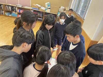 今年の「お別れ会」には、5年生が取り組んできたSSP(不知火スマイルプロジェクト)の成果として「みんなでワイワイなぞ解きゲーム」を行いました。校舎内のいたるところに26ものミッションが準備されました。子供たちは縦割り班に分かれて、ポイントをゲットするためにミッションに挑戦していました。上位チームや「ナイス協力賞」のチームには、宿題を免除してもらえる「宿題パスチケット」がもらえるとあり、チームで協力しながら知恵を出し合いながら、必死(^_^)になぞ解きゲームに挑んでいました。