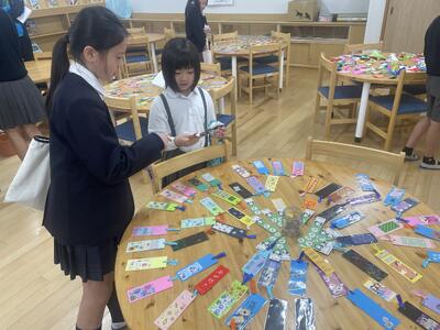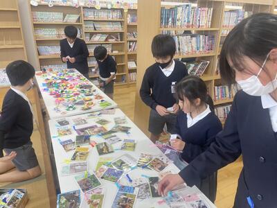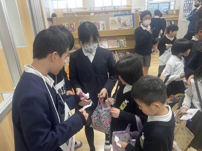 図書室で行われたお祭りでは、自分の今年の貸し出し数に応じて、「ふつうくじ」や「スペシャルくじ」が設定してあり、くじの景品には図書委員手作りの「しおり」や「折り紙」が準備されていました。子供たちはくじの結果に一喜一憂しながら、たくさんの景品を抱えて満足げでした。新年度も、たくさんのステキな本に出会えると良いですね。図書委員会のみなさん、ステキな企画をありがとう。