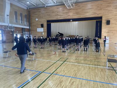 全校児童で、それぞれの学年の音楽学習の成果を発表し合う「音楽集会」。最後を飾るのはもちろん高学年です。