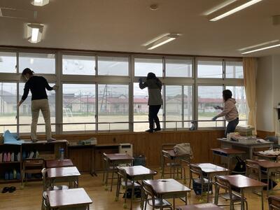 卒業式を目前にひかえた3月15日(土)、不知火小学校PTAの皆さんが、清掃活動をしてくださいました。参加されたのは、PTAの「生活委員」「持ち上げ隊」「執行部」の皆さんです。子供たちの手ではなかなか届かない窓やベランダの清掃をしていただきました。ありがとうございました。