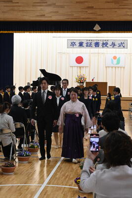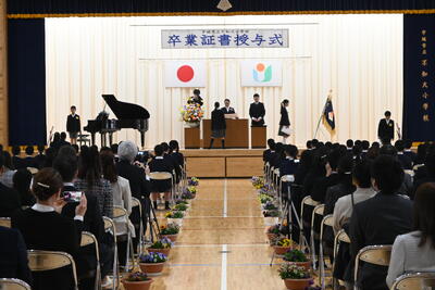 令和7年3月24日(月)、桜の花がほころぶ中、宇城市立不知火小学校第4回卒業証書授与式が挙行され、61名の6年生が不知火小学校を旅立っていきました。