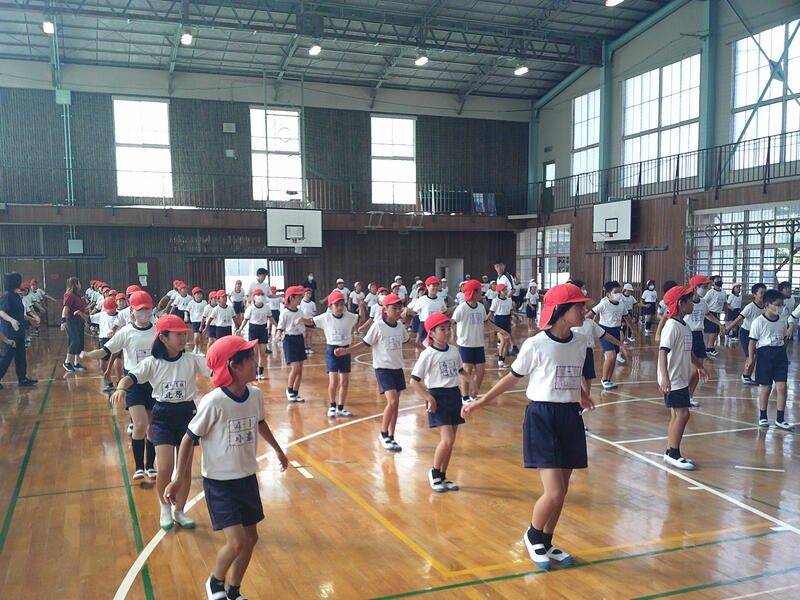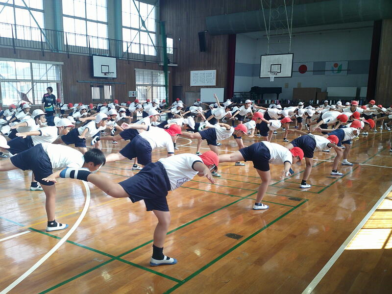10月になり、各学年での運動会練習も始まりました。1・2年生は運動場でかけっこの練習をしました。スタート練習や50mコースをまっすぐ走りぬく練習をしました。3・4年生は先週から「ソーラン節」の練習をしています。4年生が3年生に丁寧に教える姿が見られました。今日から「永尾ちょぼくれ」に挑戦しています。5・6年生は体育館に集まり、組体操の練習をしました。今日は一人技を中心に練習を行い、リズムに合わせて一斉に体を動かしていました。今後、2人技・3人技と挑戦していきます。