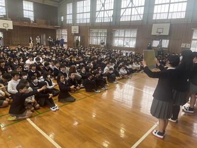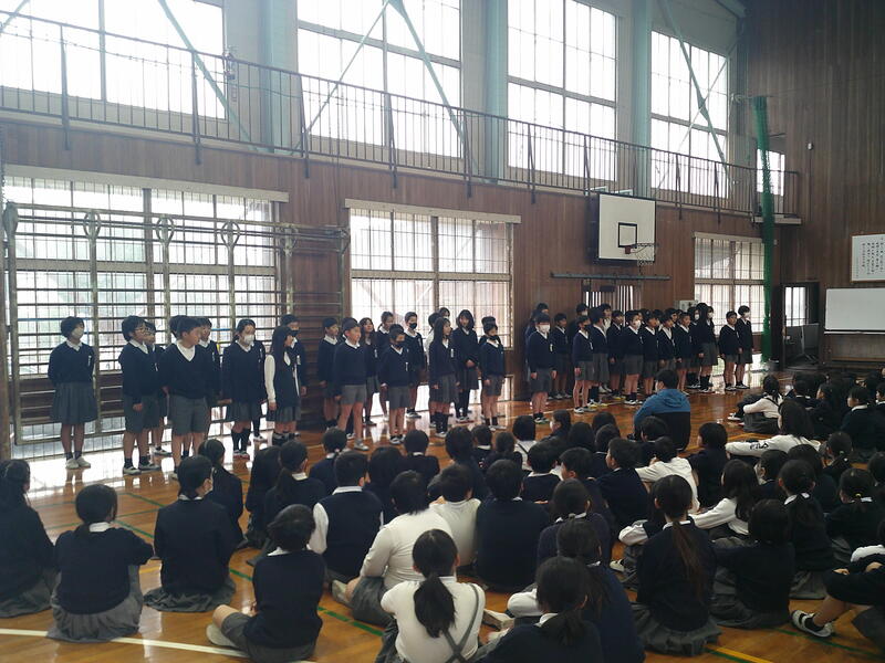 最後にみんなで校歌を歌いました。新しい体育館ができ、今の体育館とはお別れになります。「今までありがとう!」の意味を込めて、みんなで歌うことができてよかったです。