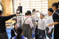 3年生の見学旅行では、社会科の学習の一環として熊本市広域防災センターと熊本博物館で学びを広げてきました。熊本市広域防災センターでは、震度5の地震や風速20メートルの台風を実際に体験しました。昼食は復興途上の熊本城を見ながら二の丸公園でいただきました。