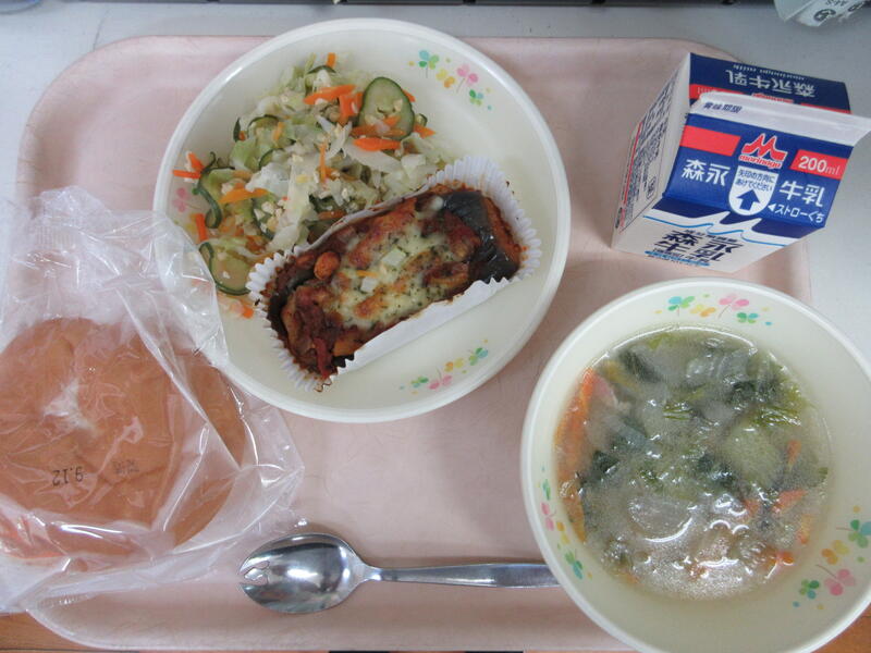 9月13日(金)の給食 とても美味しい「なすのミートグラタン」