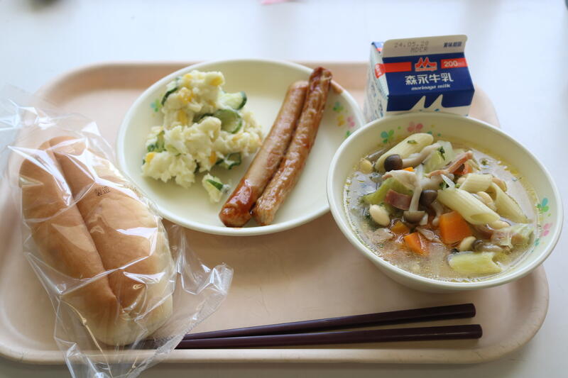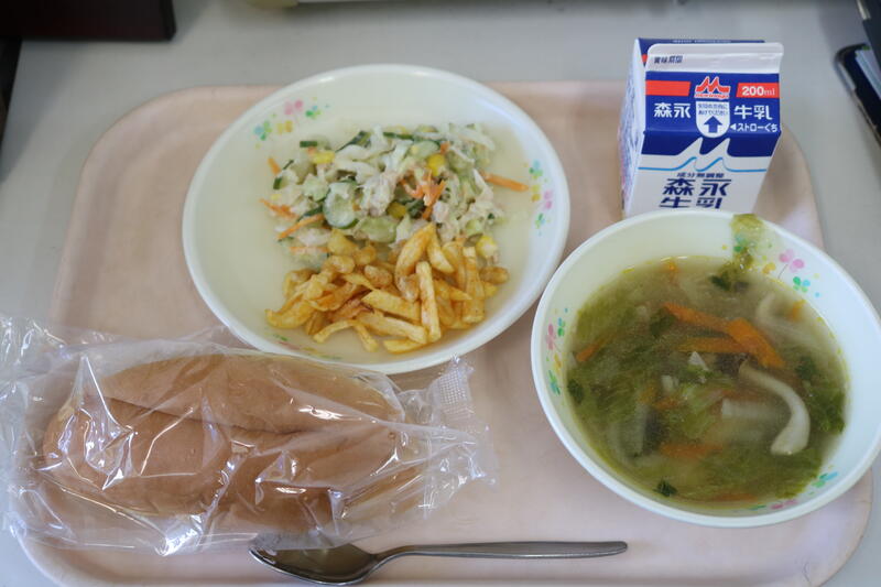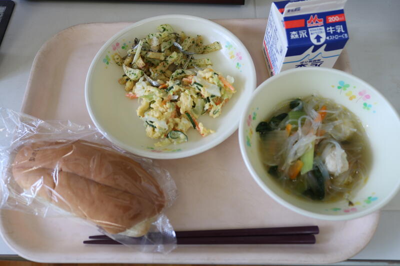 今日の献立は【牛乳、セルフエッグサンド、鶏団子スープ、青のりポテトビーンズ】でした。セルフエッグサンドは、エッグサラダをカットパンに自分ではさみます。このエッグサラダがとても美味しい!今は簡単にコンビニでサンドイッチを買えますが、私の小学生の時は、コンビニなどなく、運動会の時に家族で昼食を食べるとき、母がサンドイッチを作ってくれていたのを思い出しました。何かイベントがある時のサンドイッチは、私にとって特別なもので、今日はその味を思い出しながら食べました。世界で2番目に美味しいサンドイッチ(1番目は母の味)をありがとうございます。今日も美味しい給食に感謝・感謝です。
