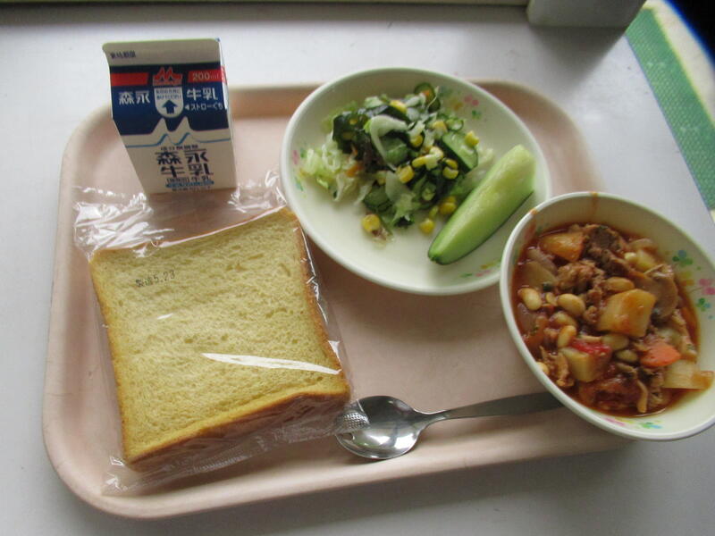 今日の献立は【牛乳、セルフツナサンド、ラビオリスープ、スパイシーポテトビーンズ】でした。ツナはマグロのことです。キュウリやツナをマヨネーズであえたサラダを自分でパンにはさみます。こぼれないように少しずつ食べては、加えてを繰り返します。一気にはさむと噛んだ瞬間にこぼれてしまいます。自分で量を考えながら食べるのもいいものですね。余談ですが、昔はシーチキンという魚がいると思っていました。(笑)また、スパイシーポテトビーンズは、ピリッとした辛さがくせになる美味しさでした。今日も美味しい給食に感謝・感謝です。