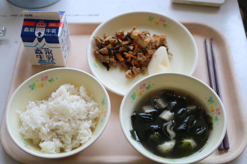 今日の献立は【牛乳、麦ごはん、肉どうふ、春雨の酢の物、ミニトマト】です。今日出てきたミニトマトは、甲佐町産の「アイコ」という品種だそうです。「美味しかった!」「甘かった!」などの声があり、大好評でした。肉どうふには、豚肉・豆腐・キャベツ・ニンジンなど味が染み込んだ具材がたっぷり入っており、ご飯が進むような味わいでした。春雨の酢の物にはスクランブルエッグが入っており、お酢の酸味をまろやかにしていたため、職員室では「子どもも食べやすいよね」という声が上がっていました。是非ご家庭でも真似されてみてはいかがでしょうか。今日も美味しい給食に感謝・感謝です。