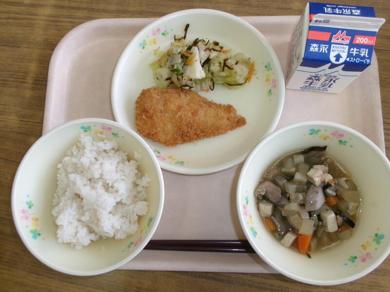 今日の給食のメニューは、【牛乳・麦ご飯・コロッケ・みそ汁・きんぴら】です。今日のみそ汁について、『おいしかった』の一言です。出汁がとってもよく効いていて、また、具本来の旨味も合わさっていて感動しました。自宅では、週末の朝のみご飯とみそ汁を食べますが、みそ汁はもっぱらインスタントです。インスタントも十分美味しいのですが、やはり出汁からとったみそ汁は違いますね。