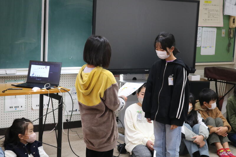 2年生、4年生、6年生の代表が、全校児童の前で堂々と発表しました。