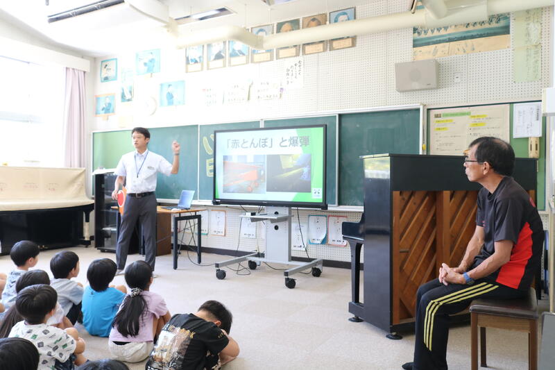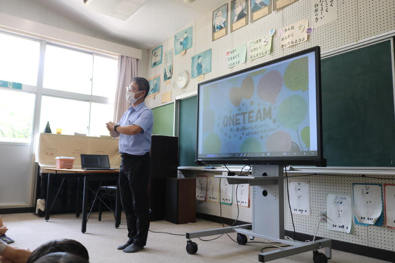 教頭先生からは、戦争に行ったおじいちゃんが無事に帰ってきたから、今の自分が存在する、命のバトンを大事にしてくださいというお話でした。おじいちゃんのことを知ることで「嫌いなおじいちゃん」から「おじいちゃんに感謝」に気持ちが変わったことも話されました。