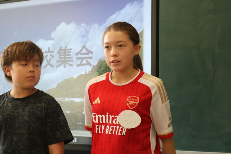 今年もノルウエーから2名の体験入学者が来ました。それぞれ、集会の時に自己紹介をしました。1週間という短い期間ですが、たくさんの思い出をつくってほしいと思います。