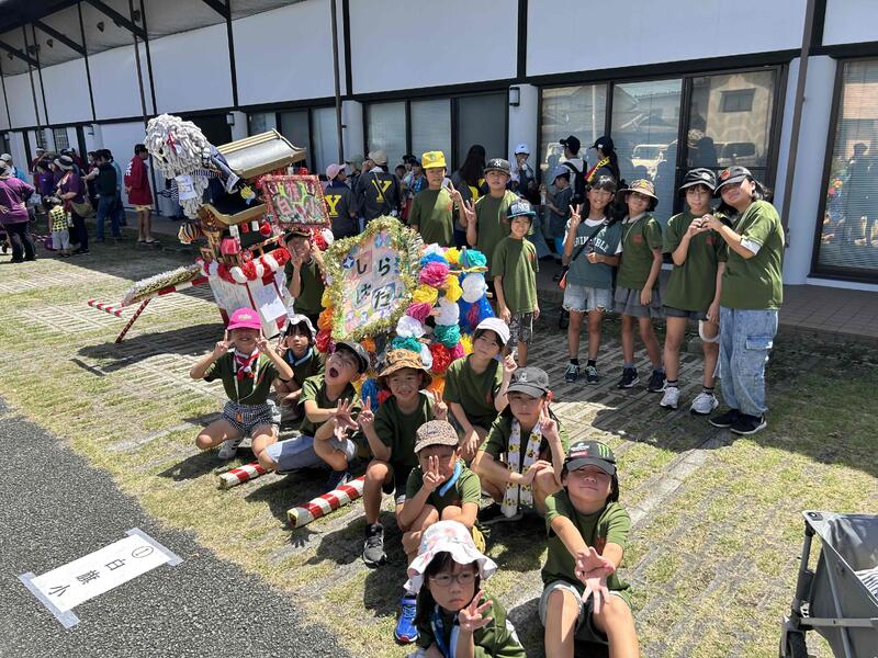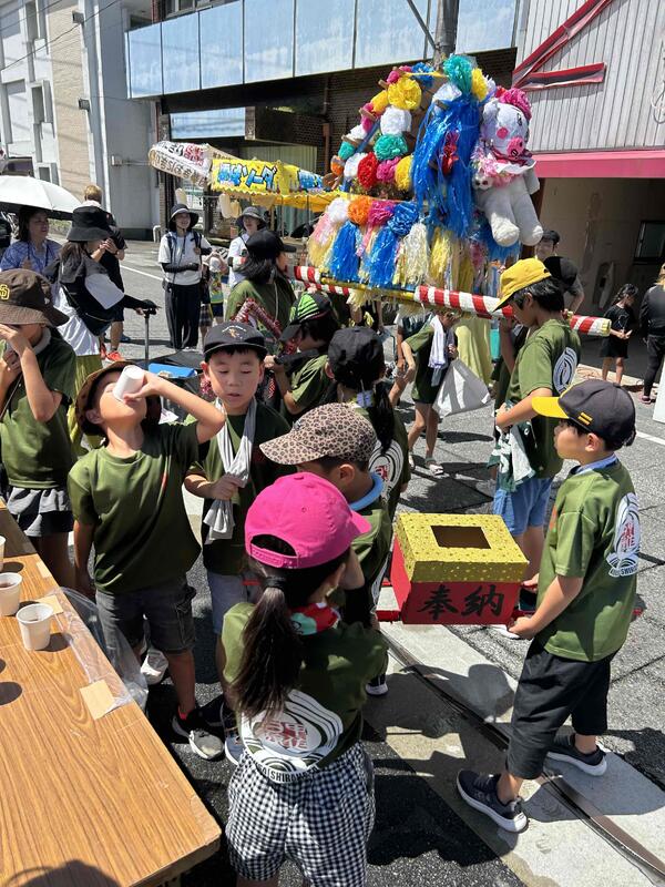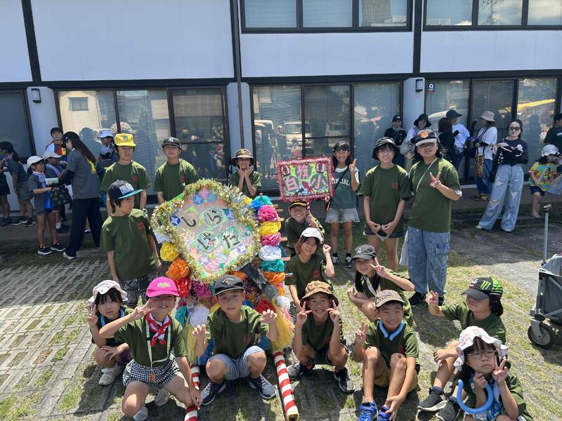 7月27日(日)に甲佐町で「あゆまつり」が行われました。昨年は「子ども神輿」の部で優勝したので、今年は2連覇を狙いました。お賽銭箱(地域の方からお金をもらった時に入れる箱)を作ったり、みんなの声がそろうように笛も購入したり、当日は朝から声出しの練習もしましたが、結果は残念ながら優勝できませんでした。熱中症予防のため、コースも短くなる暑さの中、みんな声を出して一生懸命頑張りました。来年こそはリベンジを!