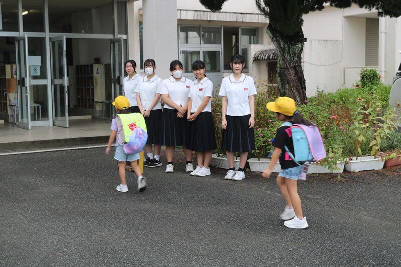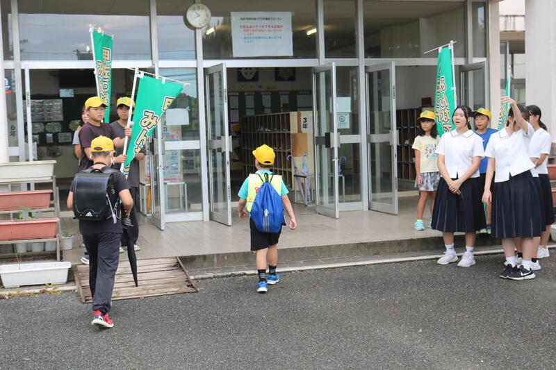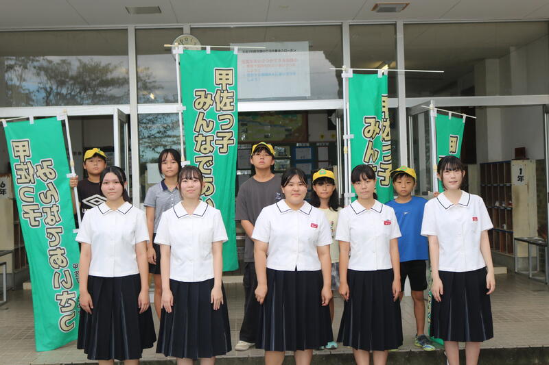9月5日(金)に小中合同挨拶運動が行われました。中学校からは、本校を卒業して甲佐中の生徒会で執行部または、委員会の長や、副委員長をしている先輩たちが来てくれました。小学校からは児童会のメンバーが参加してその中学生と一緒に挨拶運動をしました。中学校に行っても母校を訪れてくれることを大変うれしく思います。本校の児童が中学生になってもまた、笑顔で戻ってきてくれるといいなあと思います。