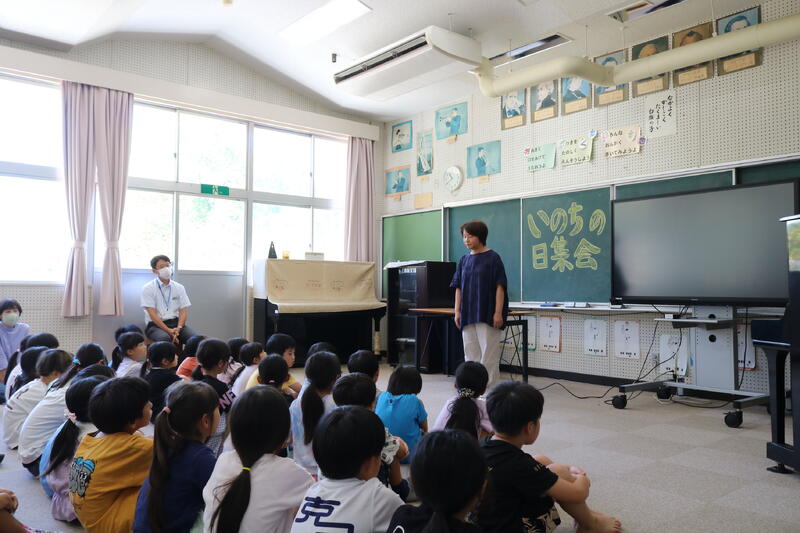 この集会後はそれぞれのクラスで振り返り行い、みんな「いのち」について考えていました。