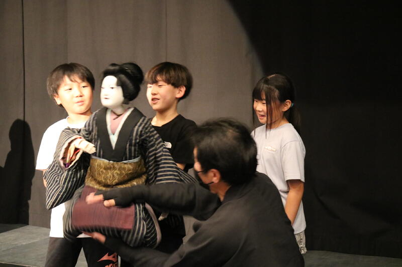 写真2 清和文楽(山都町に伝わり、約170年の歴史をもつ人形浄瑠璃芝居)(一つの人形を動かすのに3人が必要)