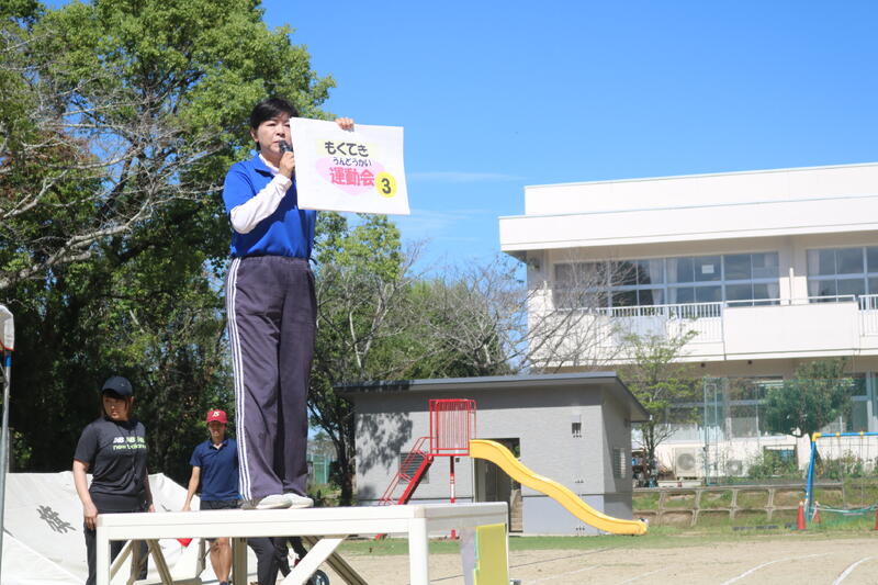 開会式では、甲佐町甲斐町長、PTA会長にご挨拶をいただきました。私からも、みんなで決めた運動会のスローガン「勝っても負けてもうらみっこなし 最後まで笑顔で立ち向かう白旗っこ」に向け、最後まであきらめず、笑顔で頑張ってほしいと子供達に伝えました。