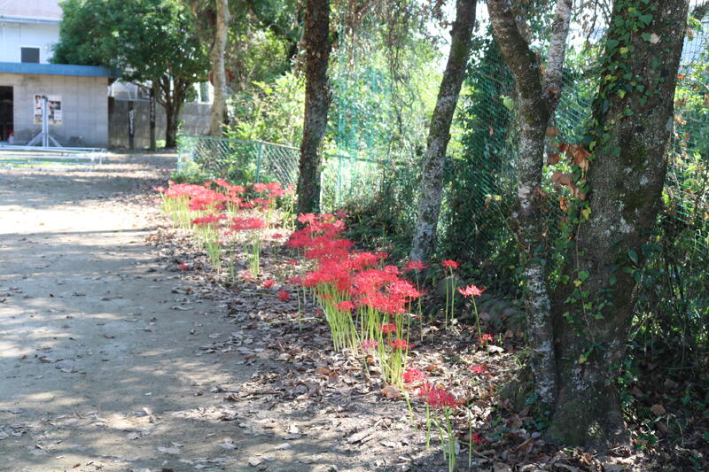今朝、あいさつ運動の後、運動場に行くと、彼岸花が美しく咲いていました。秋の訪れを感じます。