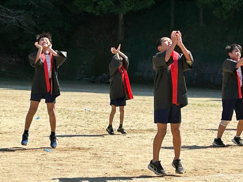 朝自習の時間は、各団で運動会の練習を頑張っていました。