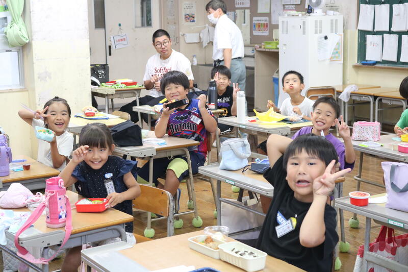 今日の給食は、保護者の方が用意してくださったお弁当!みんな笑顔でおいしそうに食べていました。早朝よりお弁当の準備、ありがとうございました。