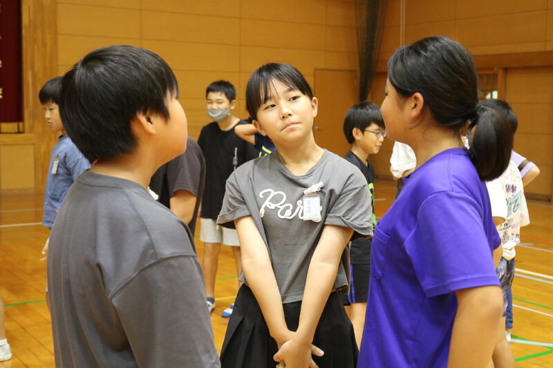 応援団が、団長を中心に練習を行っていました。「ダンスのここの部分は、こうしたほうがいいんじゃない?」「私が、トントントンと太鼓を打ったら、ヤーって言ったらどう?」など、子供達は、和気藹藹とアイディアや考えを出し合い、1つ1つのことをみんなで決定し、決定したことをもとに練習を進めていました。