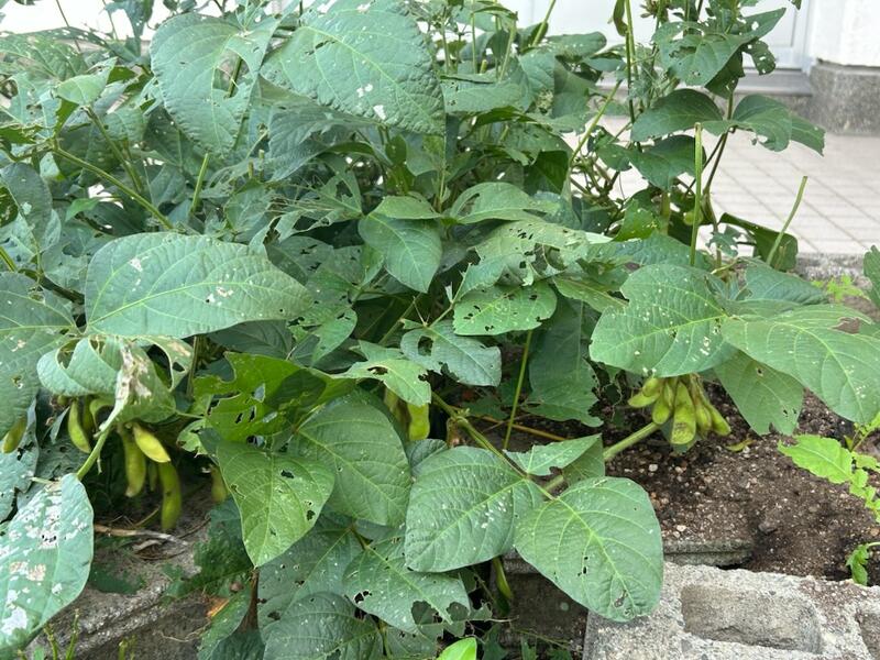 この畑は、学習の時間に苗や種を植え、毎日欠かさず朝から水やりをしているおかげで野菜や花がよく育っています。
