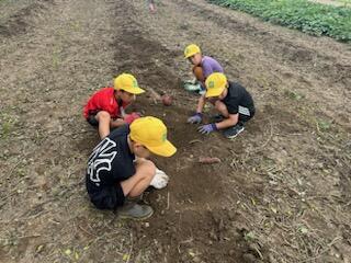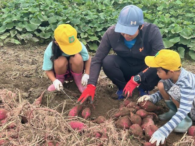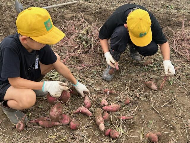 畑に行ってみると、3・4年生が、一生懸命、芋をほっていました。