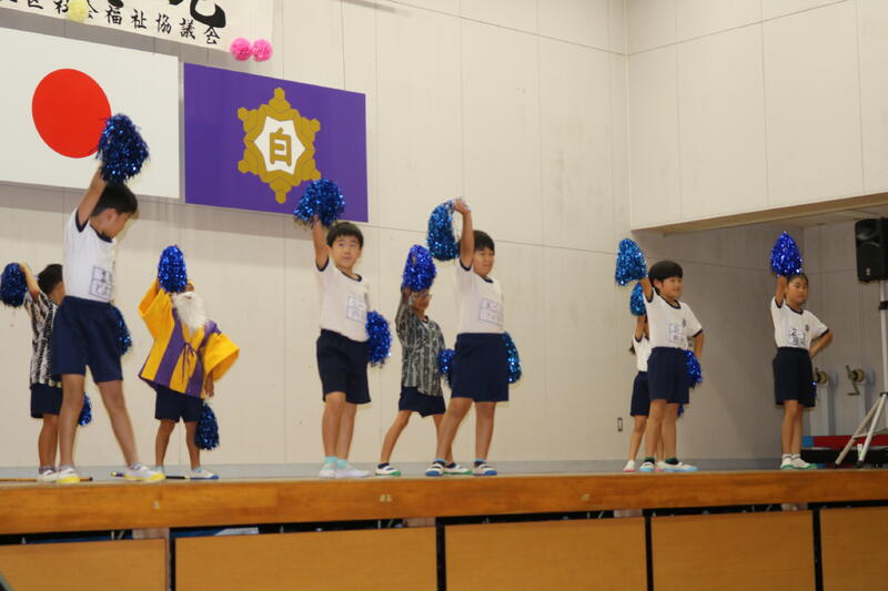 昨日、白旗地区の敬老会が白旗小の体育館で開催されました。地域の方が、たくさんいらっしゃる中で、学校の代表として、2年生が、運動会のダンスなどを披露しました。