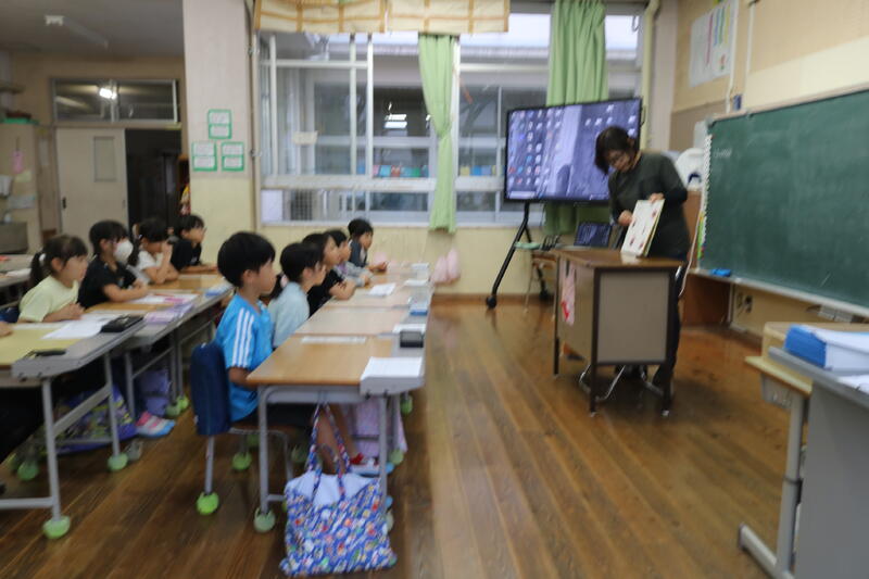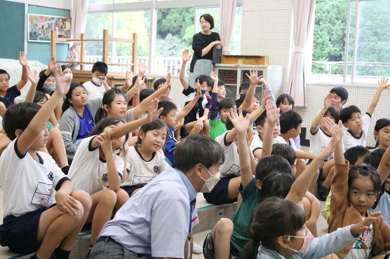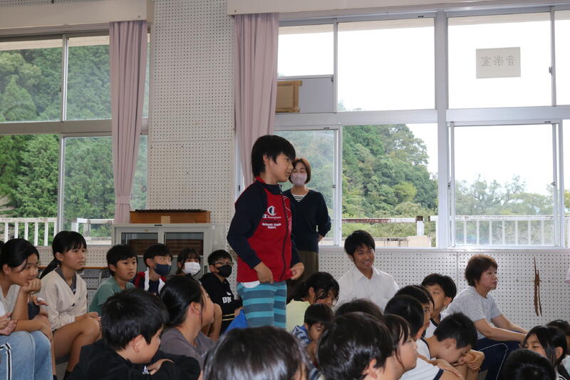 その後、4年生の国語の授業を4年教室で、6年生の算数の授業を体育館で行いました。